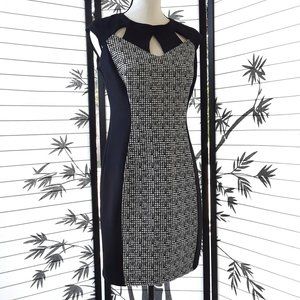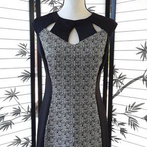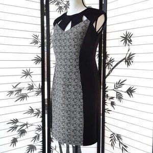 Enfocus Studio Black White Cap Sleeve Sheath Dress