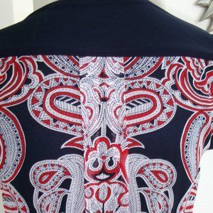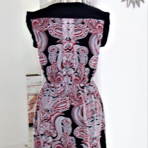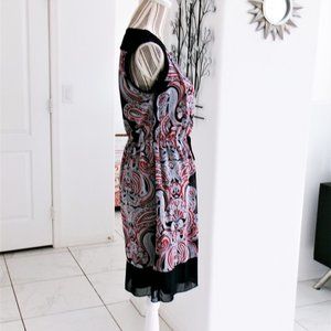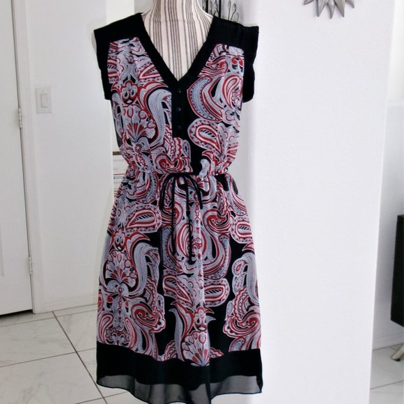 Enfocus Studio Chiffon Navy Blue Red White Paisley Print V-Neck Dress Sz 4 / S