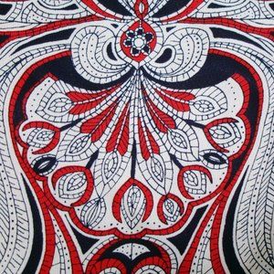 Navy blue / red / white semi sheer print over solid navy blue lining