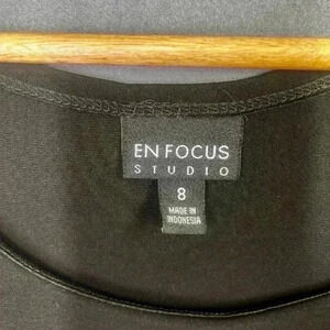 Enfocus Studio Cute black Print Dress Womens 8 lightweight stretch flowy 0521