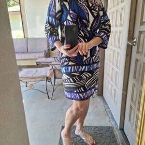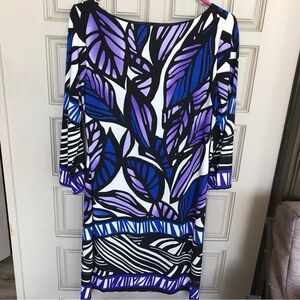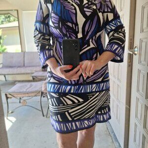 Enfocus Studio Dress 3/4 Sleeves Sz10 Very Pretty Round Neck Purp/Blue Geometric