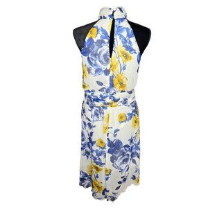 Enfocus Studio Dress Womens 10 Blue Yellow Sleeveless High Neck Floral Fit Flare