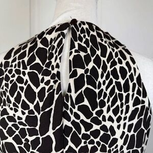 Enfocus Studio Giraffe Print Dress Brown Cream Ruffle Front Halter Style Size 12. Knee Length. Excellent condition. See photos for details and unstretched measurements. View my closet to add other items and bundle to save with one shipping fee!