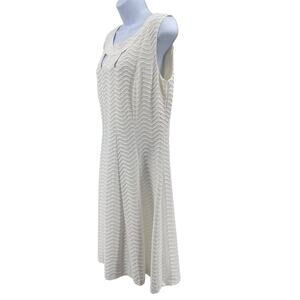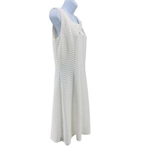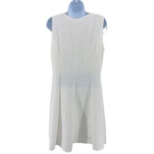 Women's Cutout Neckline Fit & Flare Dress by Enfocus Studio, US Size 14, Ivory in Color with wave pattern, Crew neck, Sleeveless, Pullover, Lined, Knee Length, Casual, everyday wear, Summer dress, Party wear, Classic, Designer look.