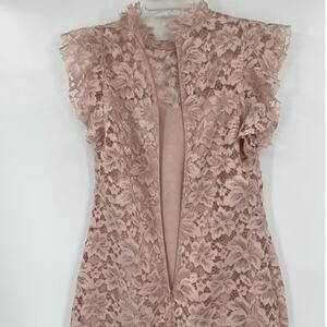 Blush Pink Lace Midi Dress Enfocus Sheath High Neck Romantic Cottagecore
