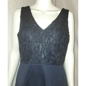 Enfocus Studio Navy Blue Lace Bodice Midi High Low Halter Dress - Size 10