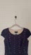 Elegant navy midi dress with eyelet pattern. Cap sleeves and round neckline. Ideal for any occasion.