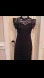 Chic navy lace dress with flutter sleeves. Perfect for evening events.