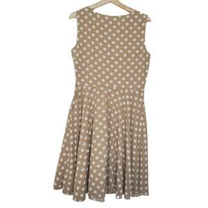 Enfocus Studio | Neutral Polka-dot Drapey Front Fit and Flare Dress
