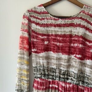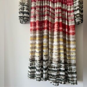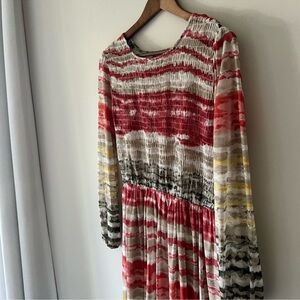 Enfocus Studio Striped Multicolor Long Sleeve Mesh MIDI Dress Size 6
