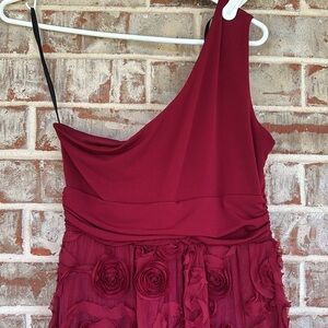 Enfocus Studio Wine one Shoulder Rosette Party Dress