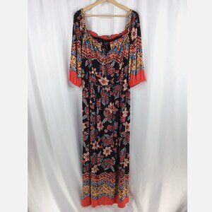 Enfocus Studio Women' Plus Size Maxi Dress 20W Peasant Floral Aztec Off Shoulder