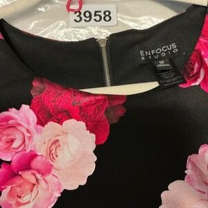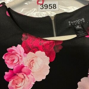 Enfocus Studio Womens 12 Sleeveless Midi Dress Black Floral Metallic Sheath