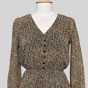 Enfocus Studio Womens Dress 4 Black Orange Ditsy Floral Cottagecore Prairie Midi
