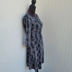 Enfocus Studio Womens Dress Snake White Black Print Fit Flare 3/4 Stretch Sz 4