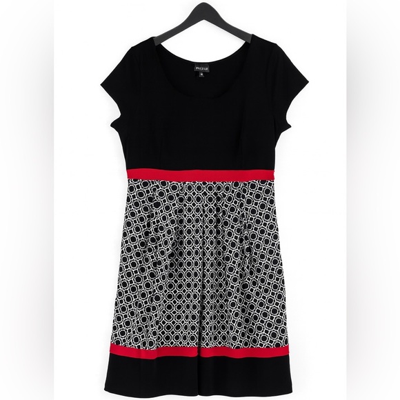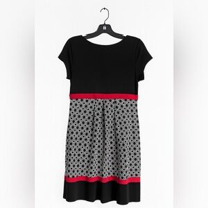 Enfocus Studio Women’s Dress Sz. 12 Black White Geometric Print with Red Stripes