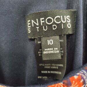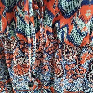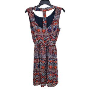 Enfocus Studio Women's Orange Blue Ikat Cage T-Back Sleeveless Blouson Dress 10