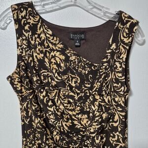 Enfocus Studio Womens Sleeveless Dress Brown Beige Size 8 Stretch Front Ruffle