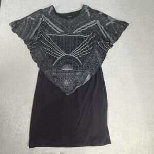 The dress features a comfortable stretch and eye-catching metallic sparkling details.