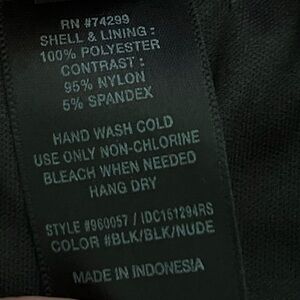 Black lace detail, sleeveless dress with attached shawl overlay. Has nude lining that peeks through. Has stretch. Preowned with small picks in fabric on shawl (not a hole). See last photo.