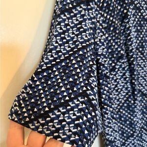 Enfocus Women short sleeve blue print mini dress. Could also be worn as a long tunic. Crewneck. Front pockets. Super soft.