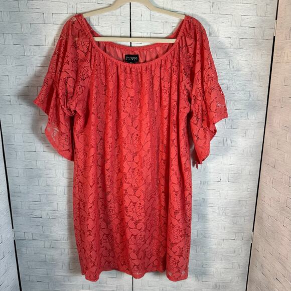 Enfocus woman mod lace short dress bell sleeve pink bohemian Whimsigoth plus Sz