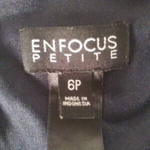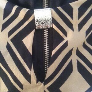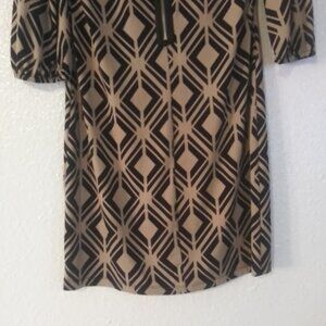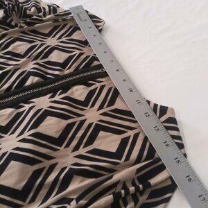 Enfocus women's size 6P beige and black pullover, back zipper closure, all over diamond print, elastic wrist, keyhole front with square decoration