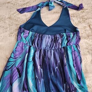 Enfocus Size 10 Aqua Purple High Low Halter Style Tie Dress