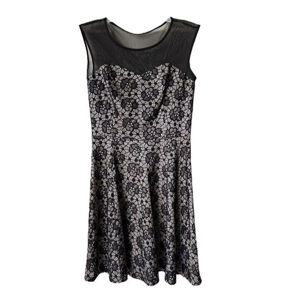 Enfocus Studio Women's Sweetheart Sheer Mesh Yoke Lace Dress Black Size 8