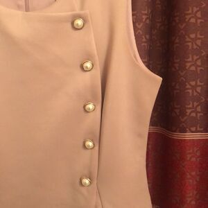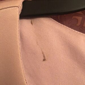 Fitting dress. Buttons are pearl material. Does not unbutton, that is decorative fashion on the design. Slight makeup mark on inside right shoulder of dress. Shown in pics. No other flaws rips or tears. Coral pink