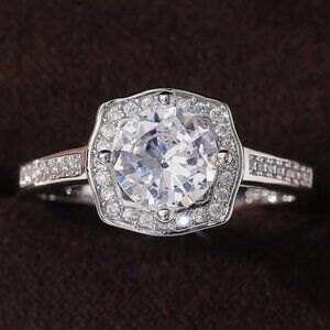 🌸Engagement Hollow Anillos Sparkling Round CZ Dainty Silver Rings, L133