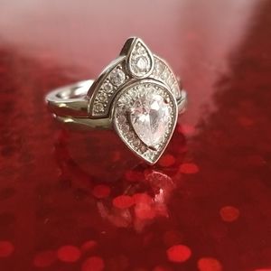 Third Eye Engagement Matching Side Ring Set Elegant and Unique Pear Diamond Ring.