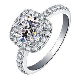 Gorgeous cushion cut halo CZ and Silver Ring
