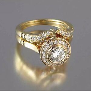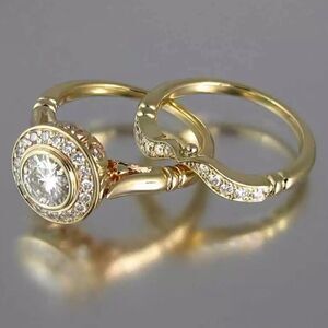 Engagement Ring Set New Gold 2PC Bridal Ring Set Wedding Ring Size 6, 7 8