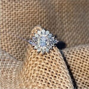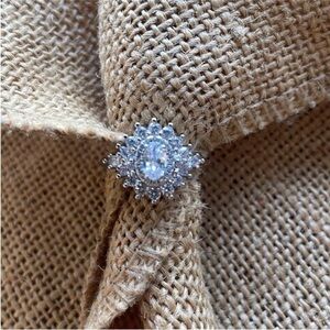 Engagement Sterling Silver Cluster CZ Elegant Ring Wedding Sparkly Size 10