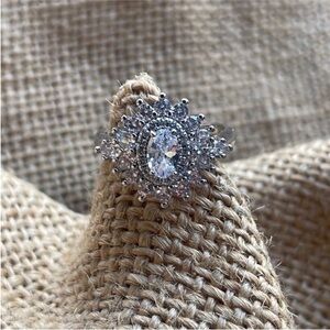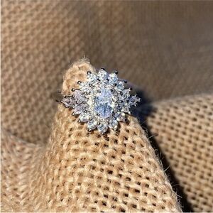 Engagement Sterling Silver Cluster CZ Elegant Ring Wedding Sparkly