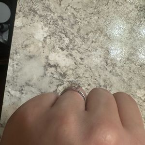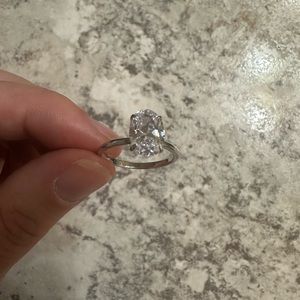 Beautiful 2ct engagement ring or engagement ring placement holder. 4 prong setting. Not diamond but very convincing. Pictures can’t do the sparkle justice. Size 6