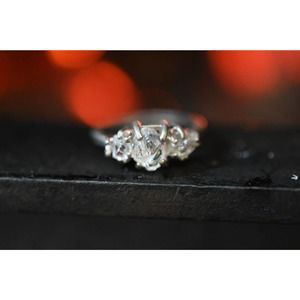 Fine Sterling Silver and Raw Diamond Engagement Ring.