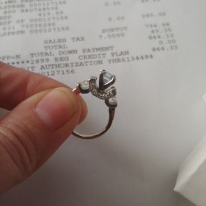 Blue Diamond with two diamonds on either side, smaller diamonds on band, white gold 14k