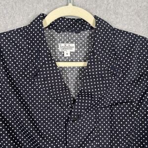 FWK Engineered Garments Blazer Womens Size 3 Navy Blue Polka Dot Jacket Shirt Quiet Luxury Corp Career Work Office Business Church Preppy Nautical Academia 100% Cotton Collar Thin Lightweight Pockets Buckle Strap