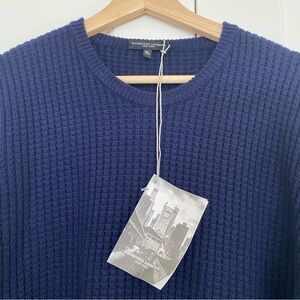 A pull over knit sweater with an all-over navy waffle knit texture made from a soft wool. Features a thermal fitted design that's intended to be worn as an insulating layer. Finished with rib knit detail along the neck, cuffs and hemline.