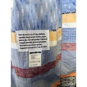 Engineered Garments Lab Shirt in a multi-pattern cotton patchwork. Size Small. Made in New York. Signature EG construction with mixed textures, contrast striping, large front pockets, and an elongated silhouette. Lightweight and breathable with a standout artisanal look. Fits oversized (can fit men's large). Excellent pre-owned condition.