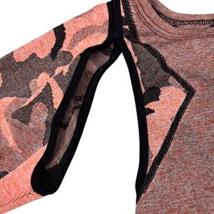 *NWT* peach orange & black Engineered Life long sleeve crop top & leggings activewear set in a size S. Features camouflage pattern print, thumbhole cuffs & cutout underarm cooling design.