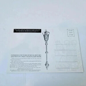 Vintage 1992 new old stock oversized postcard from England depicting the 5 Historic Royal Palaces, King Henry VIII, Queen Elizabeth I, suit of armor, crown, etc. See photos for complete condition and description. Oversized measuring 7 1/8" x 4 3/4". Smoke free environment.