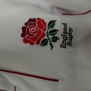 England Rugby Pull on shirt men's medium or unisex white with red stripe