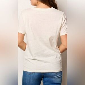 “England” Graphic Tee. “Stronger together even apart” printed along bottom. Pics on mannequin and with measuring tape are size M.