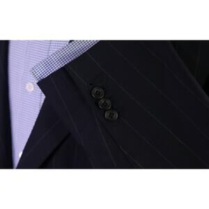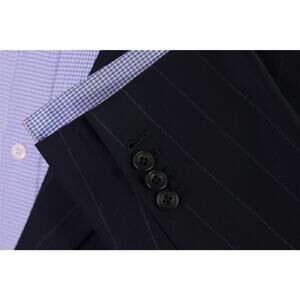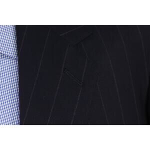 English Cut Bespoke Savile Row Tailors Navy Chalkstripe Suit Blazer Jacket 50L
