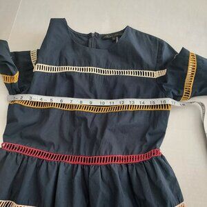 Size small English Factory A-Line Multicolor Striped Navy Mini Dress. 100% cotton. Lining 70% polyester 30% cotton. Back zipper closure. Long sleeves. Pit to pit 17” Length 31” Worn once. Excellent pre-owned condition.