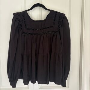 English Factory Black Blouse with Crochet Detail - Back Button Missing