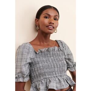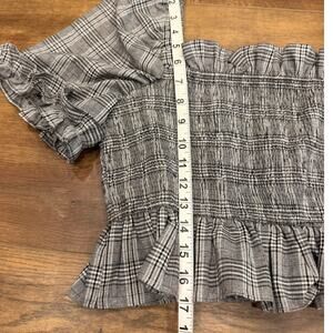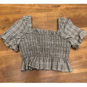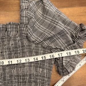 English Factory Black White Plaid Smocked Top Puff Sleeve size Medium